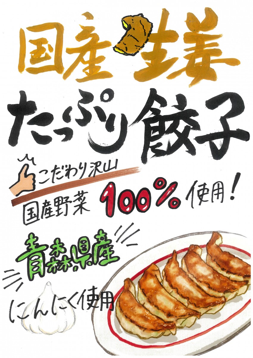 国産生姜をたっぷり使用したこだわりの餃子です。