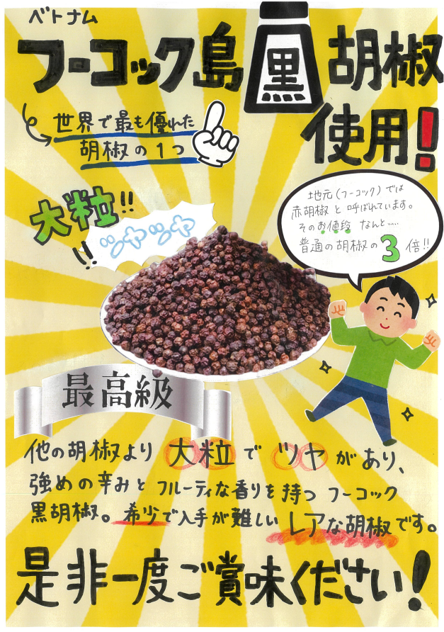 胡椒へのこだわり…フーコック島産黒胡椒使用